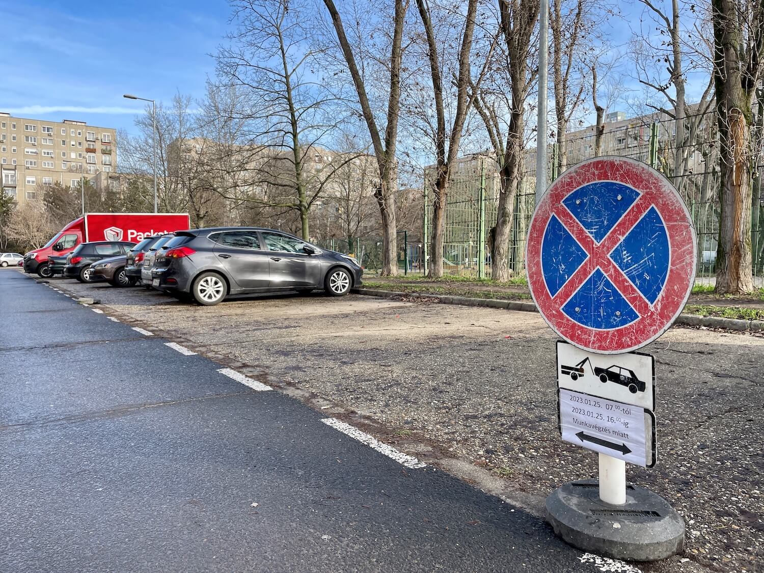 - Jendrassik György utca 1-2. szám előtti parkolóban (elkerített sportpálya előtt): 2023 01.25-én 08.00-tól-15.30-ig és 2023.01.26-án 8.00-tól-15.30-ig.
