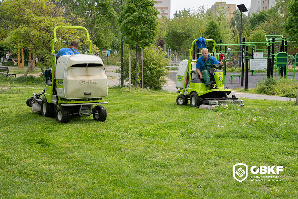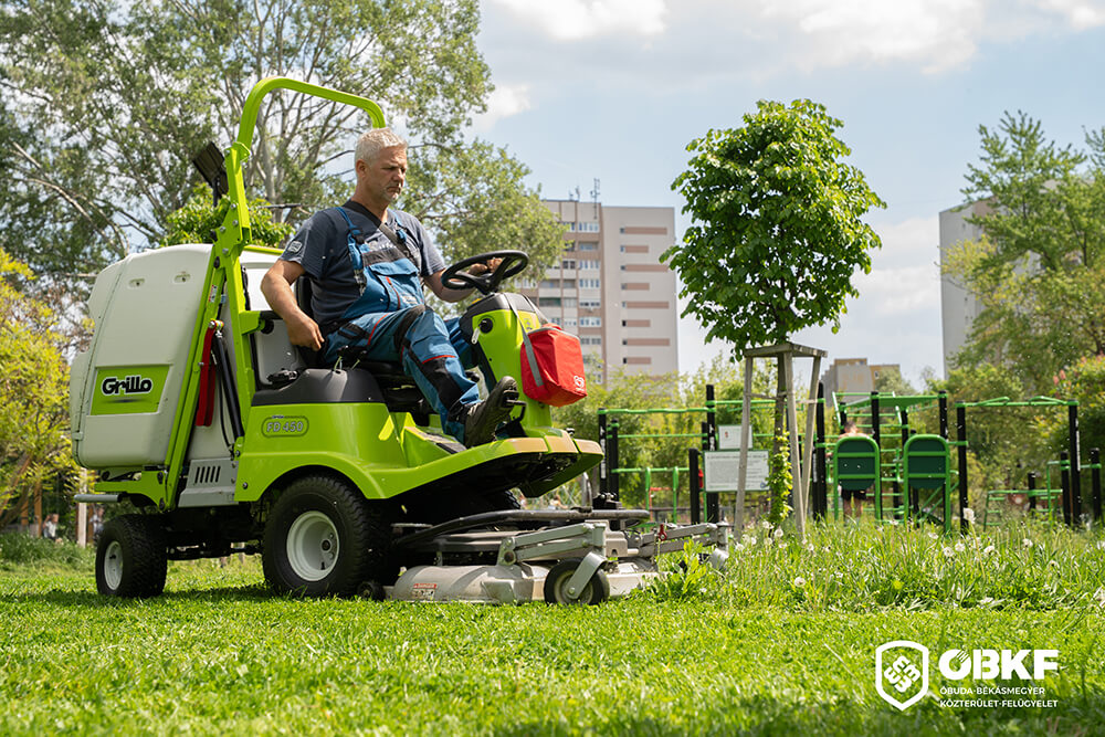 Az ÓBKF Városüzemeltetési és Köztisztasági Osztályának munkatársai nemcsak modern eszközökkel dolgoznak, hanem alapos munkavédelmi és gyakorlati képzést követően végzik a feladataikat. Az újonnan beszerzett GRILLO FD 450 típusú fűnyírótraktorok kiemelkedő fordulékonyságuknak és magas ürítési rendszerüknek köszönhetően még a nehezebben megközelíthető városi zöldterületeken is hatékonyan alkalmazhatók.