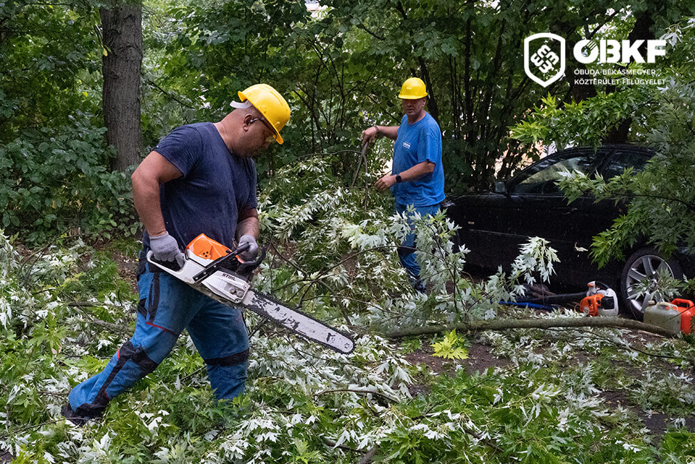 A közterület-felügyelet munkatársai folyamatosan dolgoznak a viharkárok felmérésén és felszámolásán. Először azokat a helyszíneket kezeljük, ahol balesetveszély áll fenn, illetve ahol a kidőlt fák vagy leszakadt ágak akadályozzák a gyalogos vagy gépjárműforgalmat.