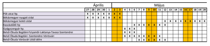 Az ütemterv az időjárás függvényében változhat. Kérjük, kísérjék figyelemmel honlapunkat, valamint a Facebook oldalunkat, ahol megtalálhatják a kaszálással kapcsolatos további információkat és az ütemezések esetleges változásait.