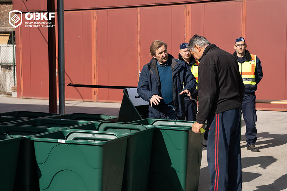 Az esővízgyűjtő tartályokat a lakosok számára a kerület városüzemeltetési telephelyén, a Pók utca 1. szám alatt osztották ki, ahol a közterület-felügyelet munkatársai segítettek a helyszín biztosításában. Az eseményen jelen volt Burján Ferenc alpolgármester úr, valamint Kléner Katalin, Óbuda-Békásmegyer Közterület-felügyelet Általános igazgató-helyettese is.