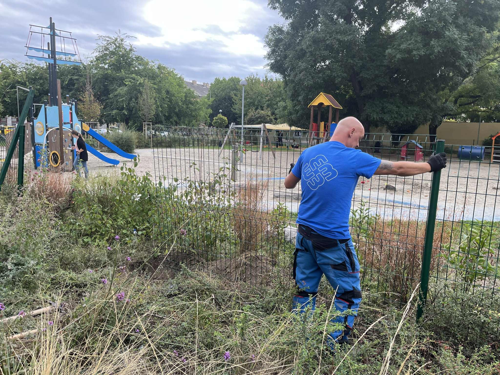 A Városüzemeltetés munkatársai megjavították a rongálás miatt megsérült kerítéseket a III. kerületi Miklós téri és Szőlő közi játszótereken.