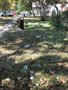 Bár az ősz még nem tombol teljes erővel, ennek ellenére rengeteg lehullott falevelet, zöld hulladékot gyűjtöttünk össze. A legmegdöbbentőbb azonban az a félelmetesen sok szétdobált szemét volt, amivel szembesültünk a választott területünkön. A csokoládépapírtól a röviditalos üvegekig, a cigarettacsikk hegyektől a műanyag hulladékig mindennel találkoztunk. A bokrok alatt, a fűben megbújva, de a legsűrűbben azokon a területeken, ahol nagyjából öt méteres körzeten belül van hulladékgyűjtő edény elhelyezve. Sajnos sokan nem veszik a fáradtságot arra, hogy odáig elvigyék a feleslegessé vált hulladékot, sokkal egyszerűbb azt szélnek ereszteni. Összesen 16 zsáknyi szemetet sikerült viszonylag rövid idő alatt és viszonylag kis területen belül összegyűjteni.