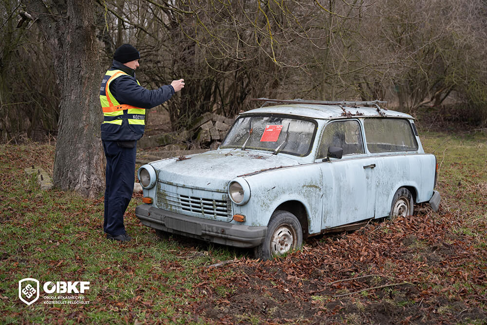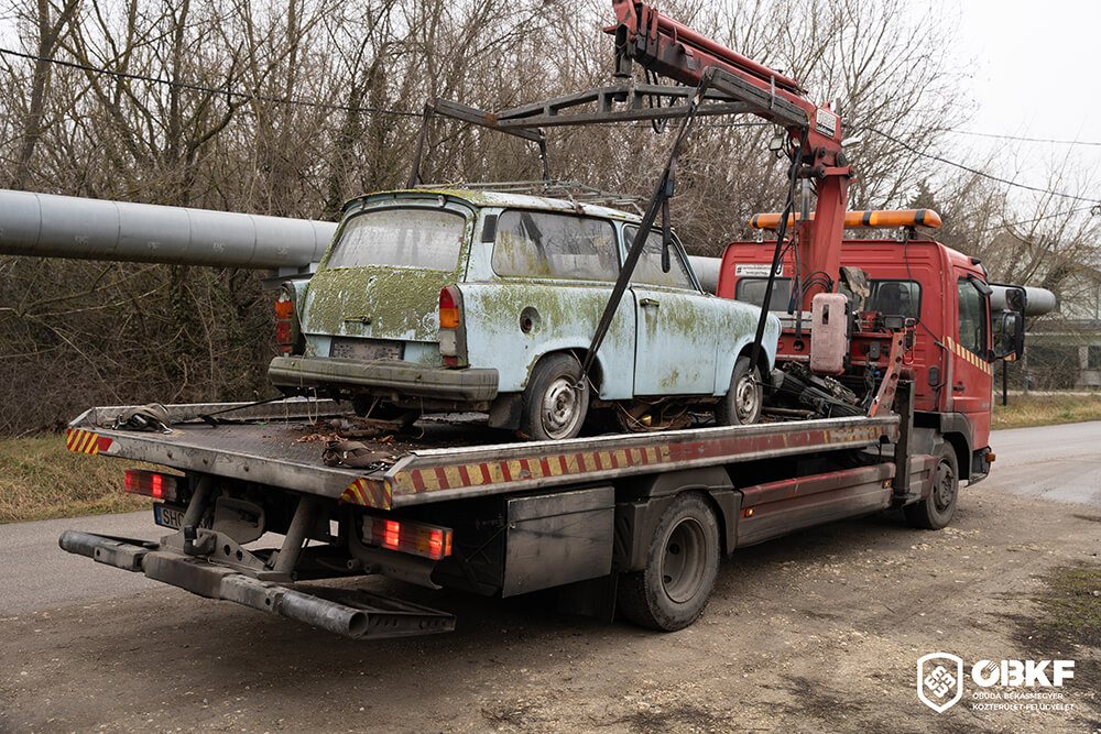 Óbuda-Békásmegyer Közterület-felügyelete elszállította azt a Trabant roncsautót, amely az egyik legszembetűnőbb szemétként rontotta a Mocsárosdűlő környezetét