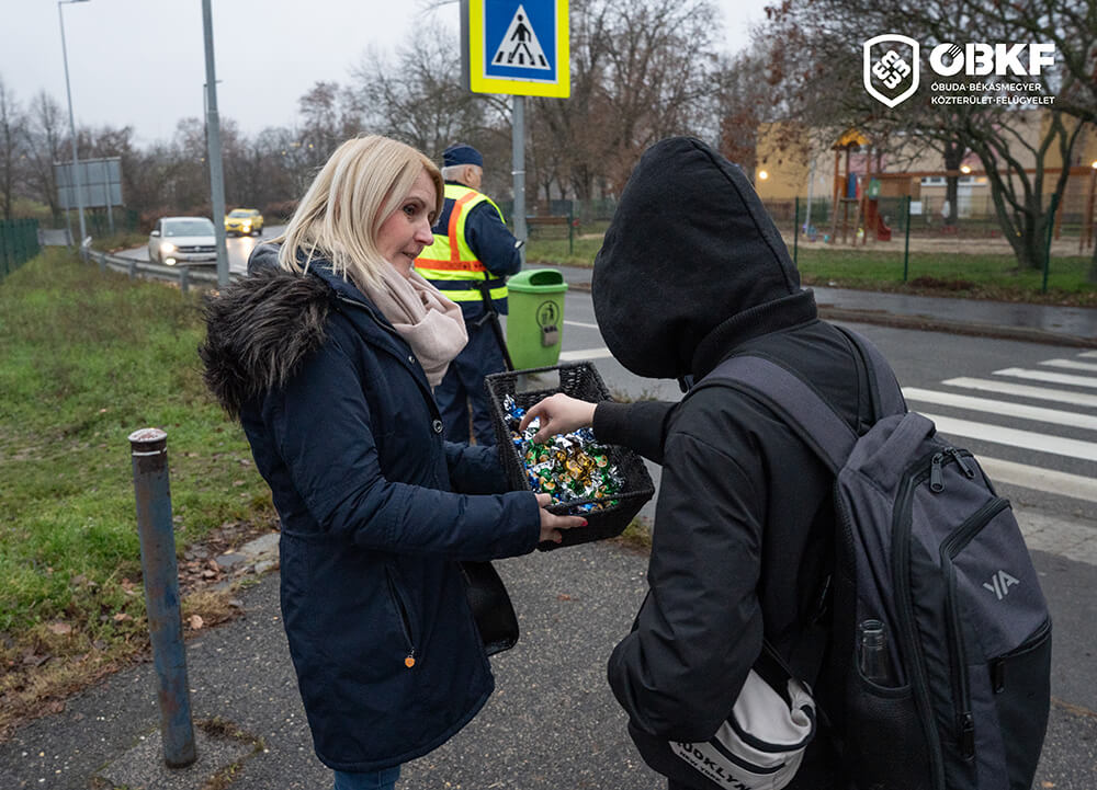 Meglepetés a zebránál – Szaloncukrot osztottak a közterület-felügyelők