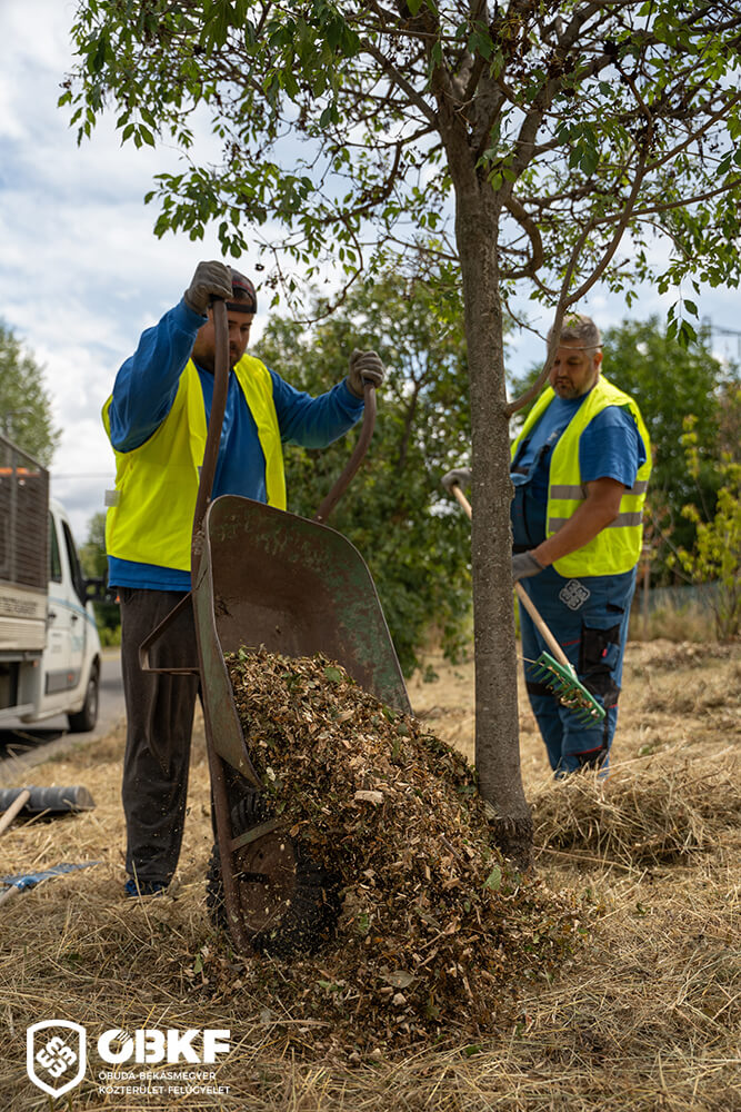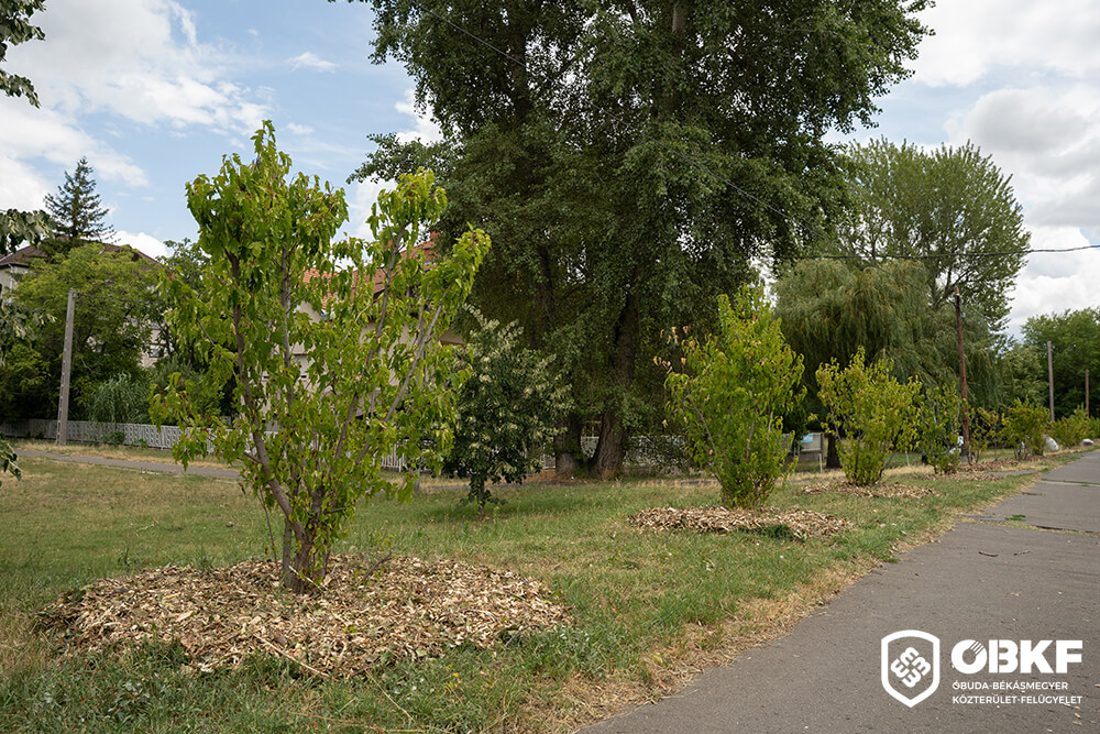A feldolgozott faaprítékból nemcsak a lakosságnak biztosítunk, hanem közterületeinken is hasznosítjuk: több helyszínen is a fiatal fák törzseihez helyeztük ki, ezzel javítva a talaj vízmegtartó képességét és védve a gyökérzónát a kiszáradástól.
