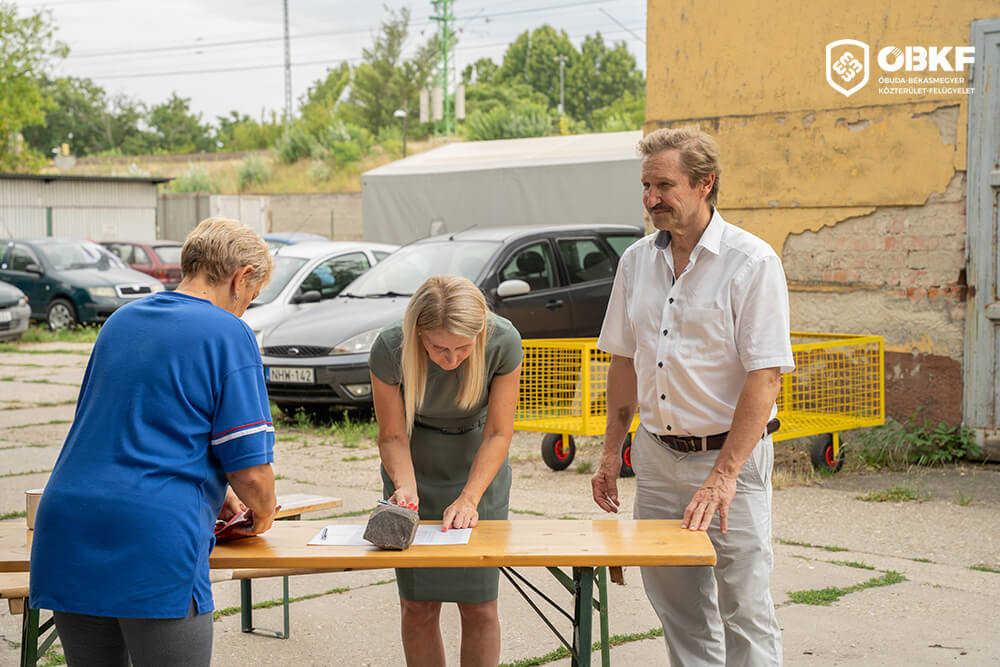 A lakóknak szánt kiosztásban Burján Ferenc alpolgármester és Kléner Katalin, Óbuda-Békásmegyer Közterület-felügyelet általános igazgató-helyettese is segédkeztek.