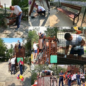 A Polgármester úr által korábban indított játszótér fejlesztésre vonatkozó rekonstrukciós programot tovább folytattuk. Ennek következő állomása a tegnapi napon a Szérűskert utca 7. számnál található játszótér volt. A munkálatok során Felügyeletünk néhány dolgozója a játszóeszközök felületét megszabadította a régi lepattogzott festékrétegtől, majd új festékréteg került fel rájuk. Emellett a játszóeszközök fertőtlenítése is megtörtént. Korábban már sor került a gyom mentesítésre az esési terek és a homokozó környékén, most a játszótéren és annak környezetében lévő hulladékot összeszedtük, megtörtént a járdaseprés és a zöld területek kaszálása is. Az összegyűjtött hulladékot elszállítottuk.