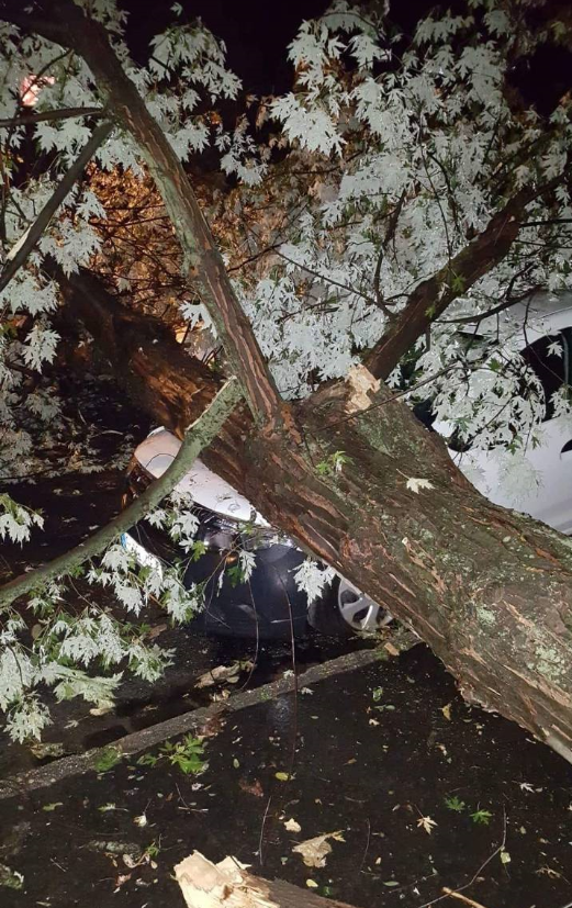 A Gyenes utcában rádőlt egy fa az ott parkoló gépkocsira, a karosszériában okozva maradandó sérüléseket. A kidőlt fát a tűzoltók emelték le az autóról.